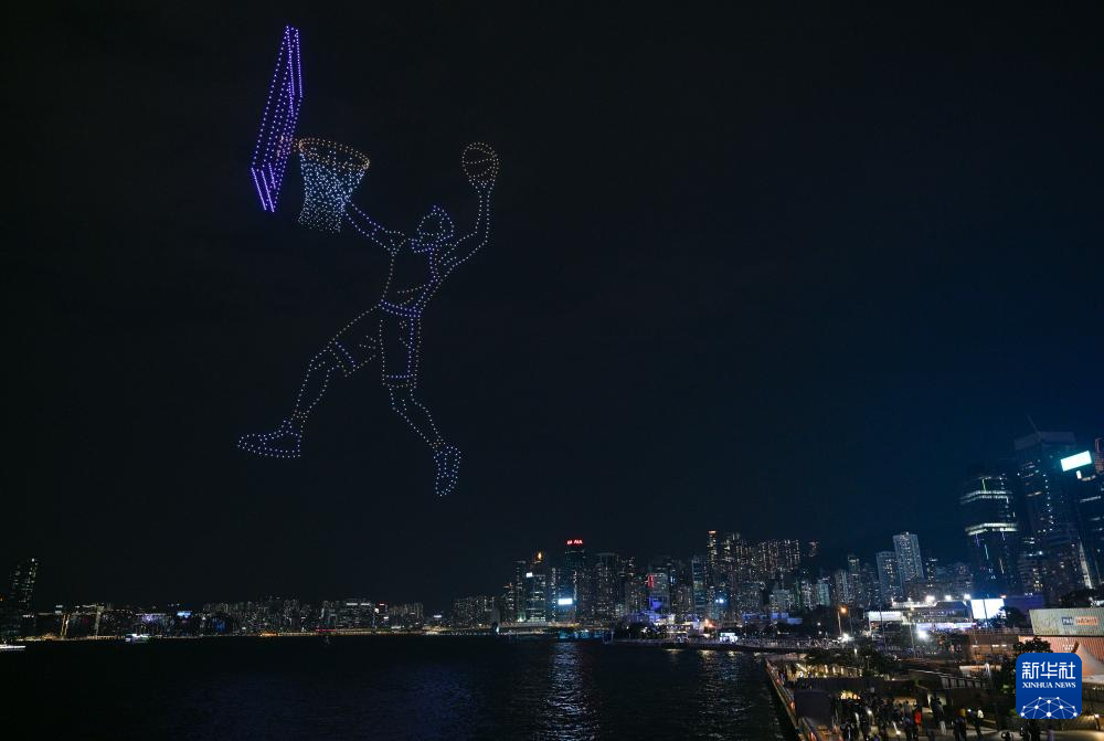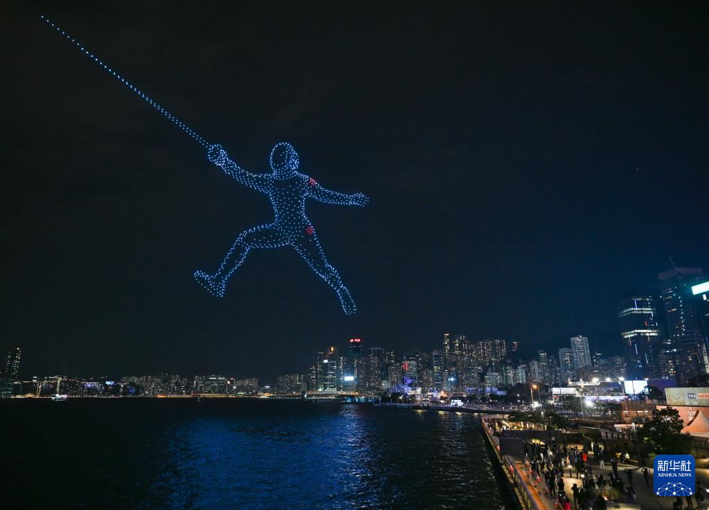 11月18日,“體育力量 閃耀香江”大型無人機表演在香港維多利亞港舉行。