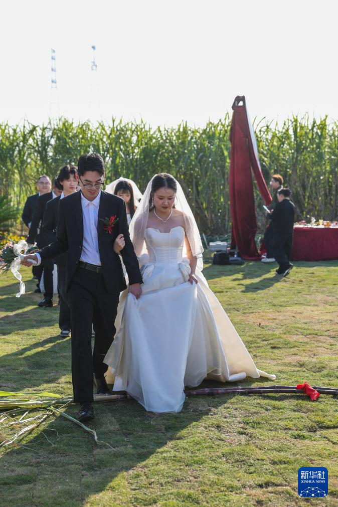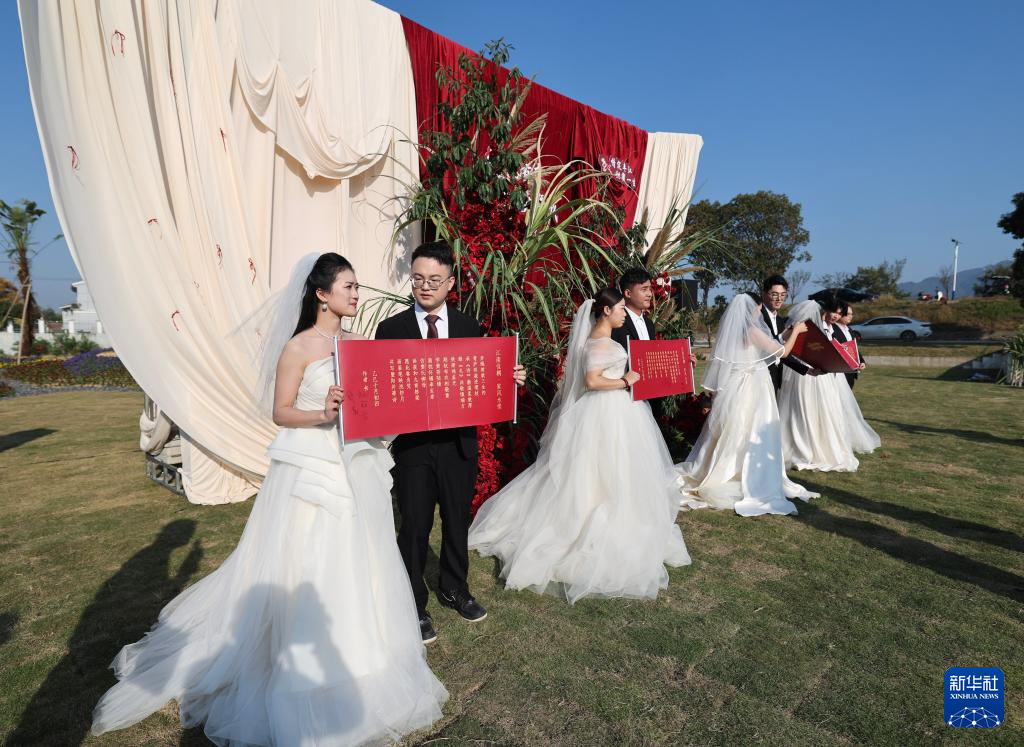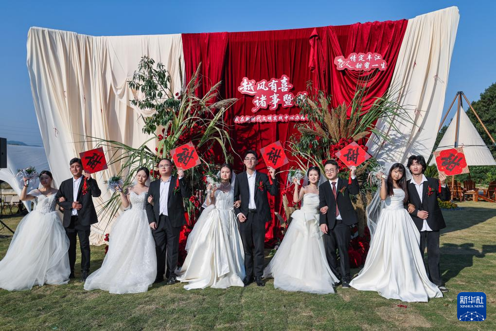 當(dāng)日,浙江省諸暨市安華鎮(zhèn)在豐江周村舉辦“越風(fēng)有喜·諸事暨成——情定豐江 甜蜜一生”為主題的集體婚禮,通過(guò)舉行跨百年蔗、紅繩結(jié)蔗、共飲“安華曲”等特色儀式,為新人打造既莊重又甜蜜的婚禮體驗(yàn),倡導(dǎo)“婚事新辦簡(jiǎn)辦”的文明新風(fēng)。