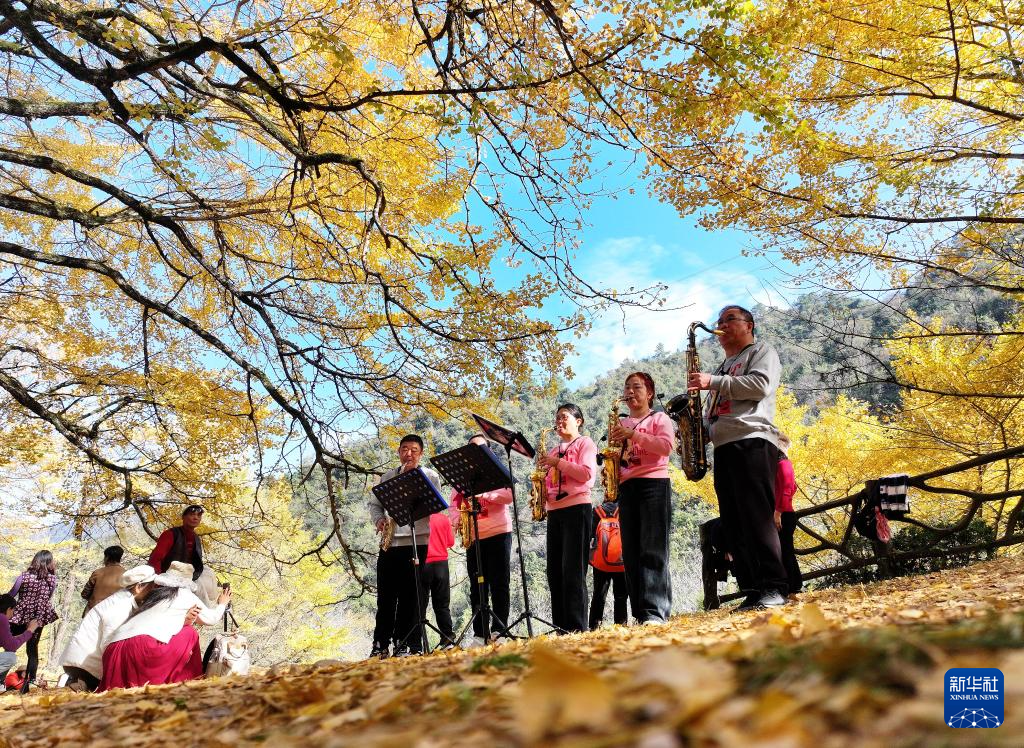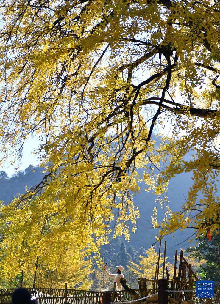 11月23日,游客在桐子坳村銀杏林中游覽(無人機(jī)照片)。