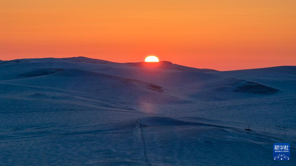 這是12月3日在內(nèi)蒙古呼倫貝爾市陳巴爾虎旗拍攝的呼倫貝爾大草原日出風(fēng)光(無人機(jī)照片)。