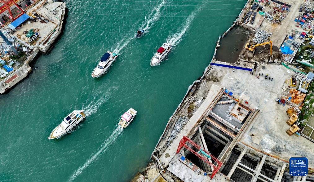 12月5日,游艇從三亞河口通道工程項目上駛過。