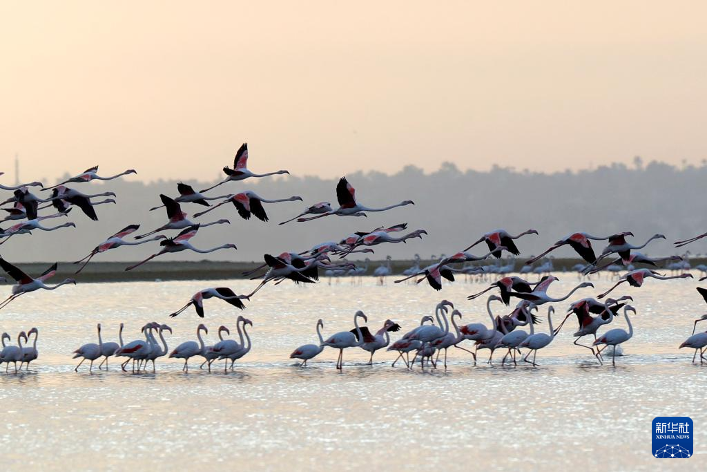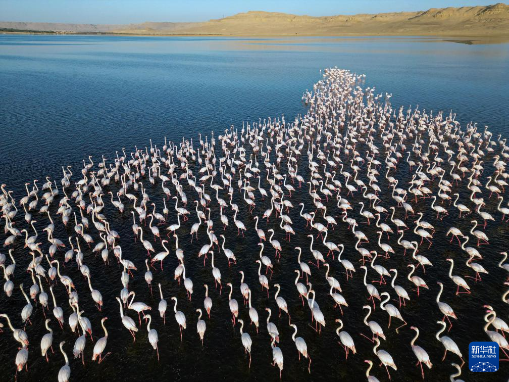 每年冬季,大批火烈鳥會飛抵埃及法尤姆省內(nèi)的加龍湖覓食越冬。