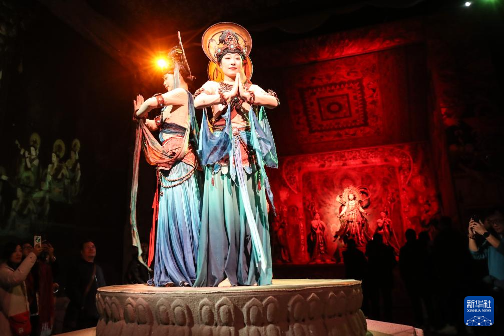 12月15日晚,大型洞窟式沉浸體驗劇《樂動敦煌》在甘肅省敦煌市持續(xù)上演,為游客展現(xiàn)了敦煌樂舞的獨特魅力。該劇全年常態(tài)化演出,彌補了當?shù)囟緹o駐場演藝項目的缺憾,為“冬游敦煌”增添了新活力。