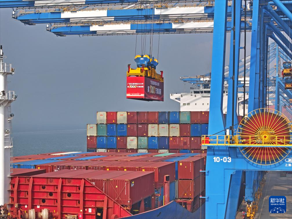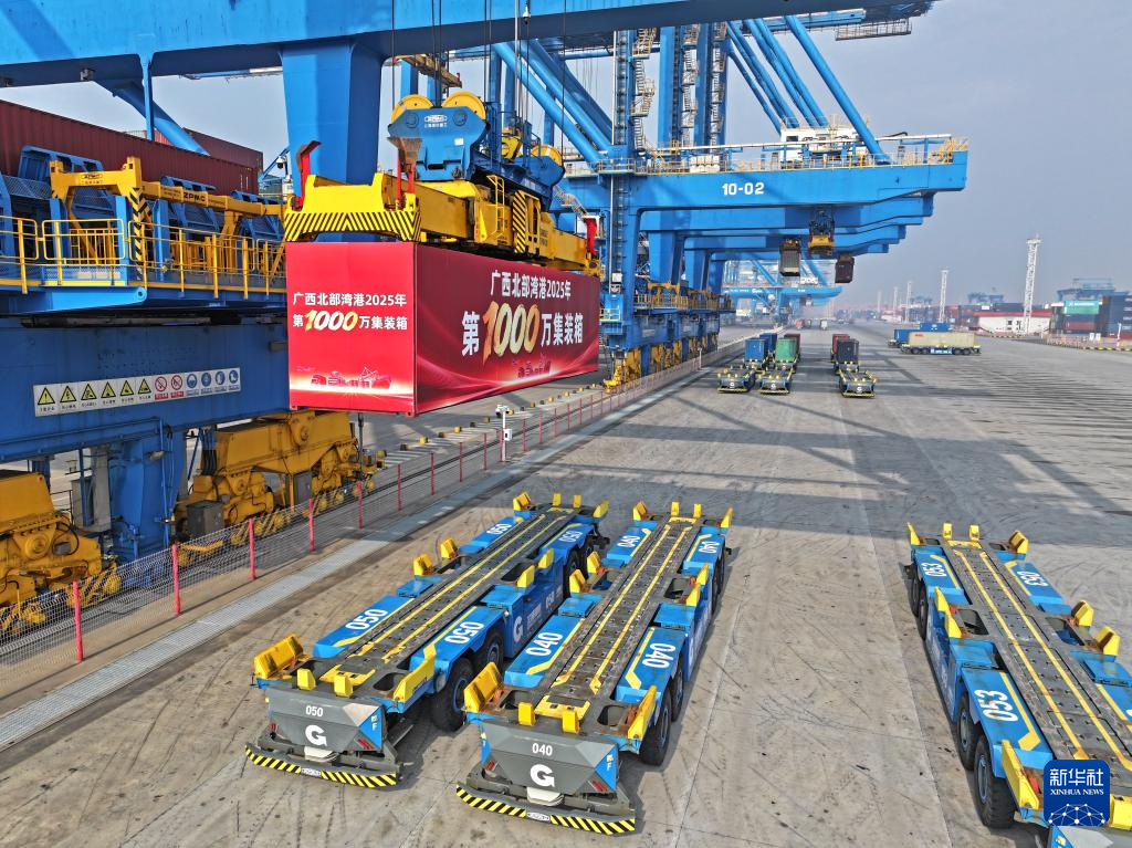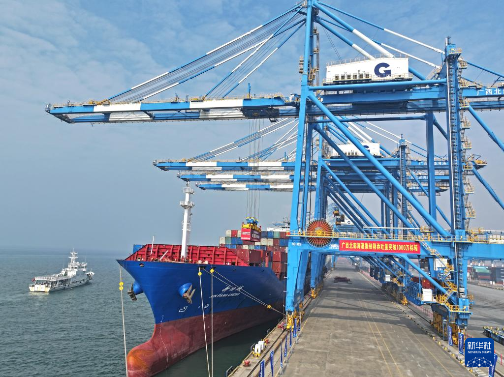 12月30日,隨著第1000萬個集裝箱被平穩(wěn)吊裝到“新防城”輪上,廣西北部灣港宣告成功邁入千萬標箱大港行列。從2017年的228萬標箱到如今突破千萬標箱,北部灣港集裝箱吞吐量年均增長超20%。同時,北部灣港第100條集裝箱航線——柬埔寨貢布航線船舶首航,西部陸海新通道第10218列鐵海聯(lián)運班列發(fā)車。這標志著北部灣國際門戶港、國際樞紐海港建設(shè)取得重大進展。