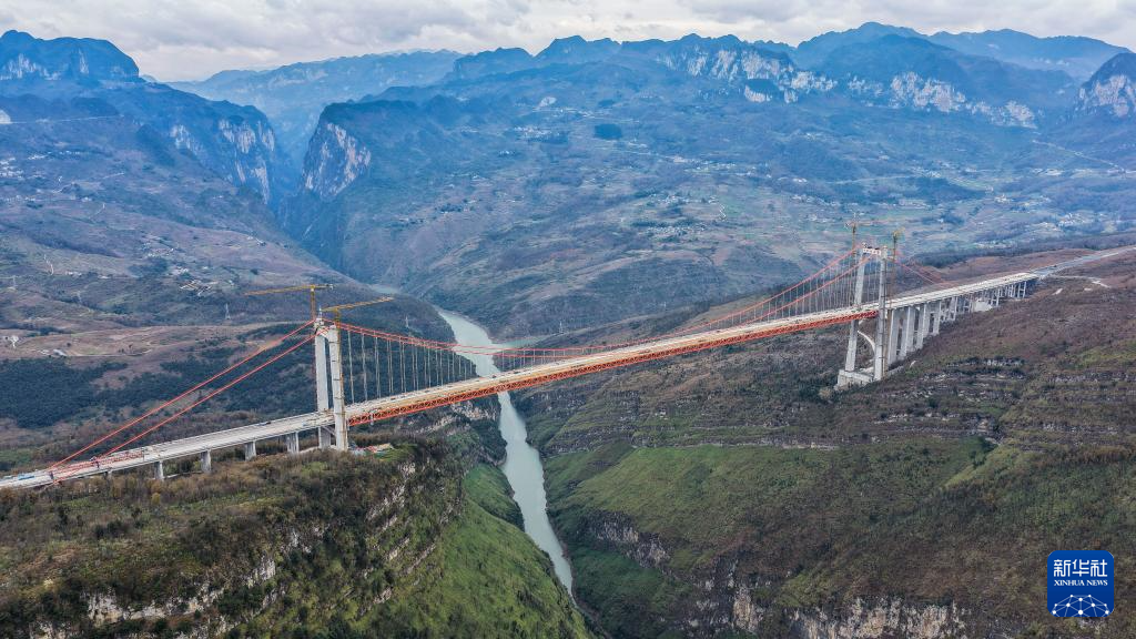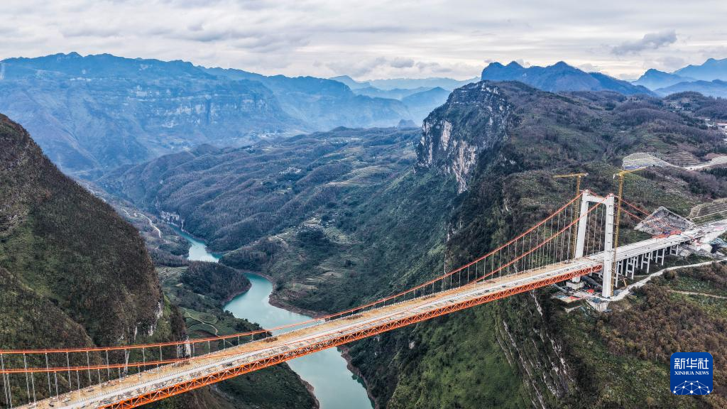 近日,貴州安(安順)盤(盤州)高速天門特大橋主體工程順利完工。天門特大橋是安順至盤州高速公路的重要控制性工程,大橋全長1553米,橋面距離峽谷水面約560米。