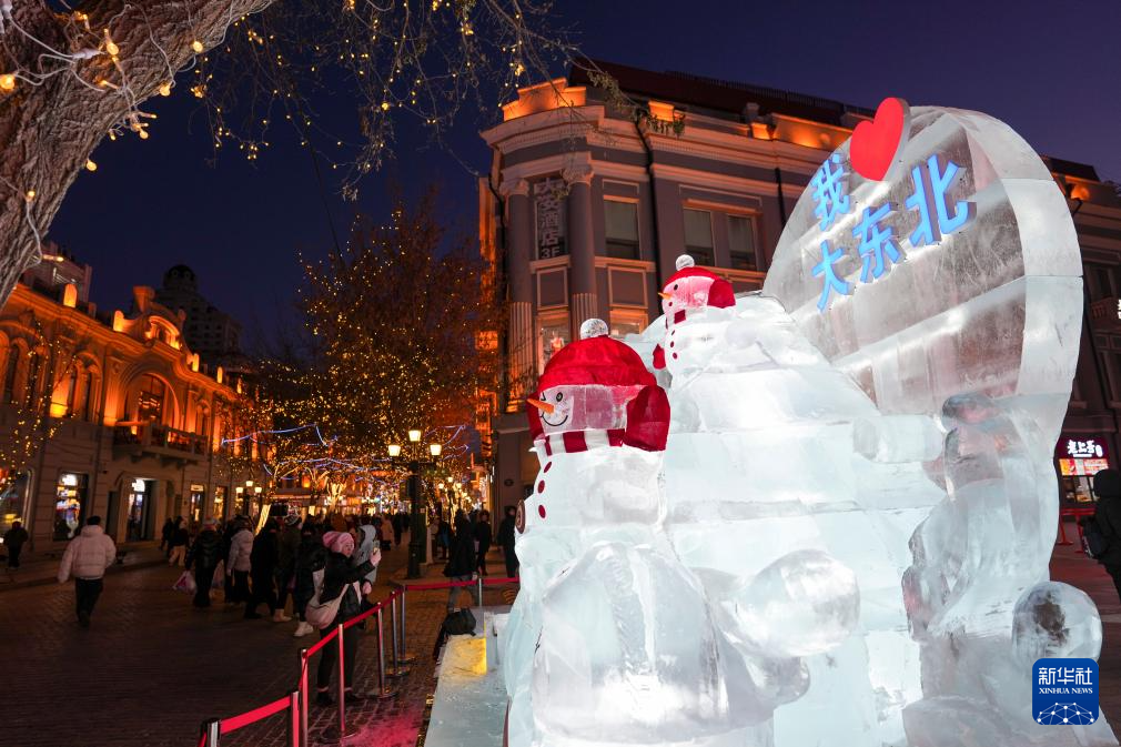 入冬以來,哈爾濱的百年老街中央大街增添了數(shù)十個(gè)冰雕景觀,把中央大街裝飾得流光溢彩,吸引眾多市民和游客游覽參觀。