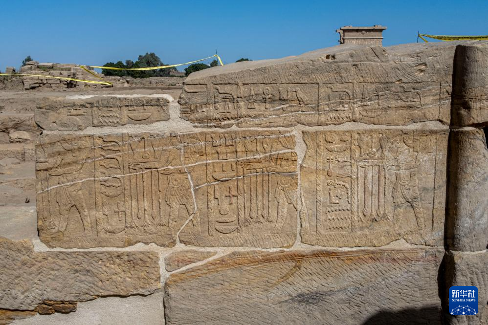這是1月24日在埃及盧克索省卡爾納克孟圖神廟遺址區(qū)拍攝的刻有浮雕的石塊。