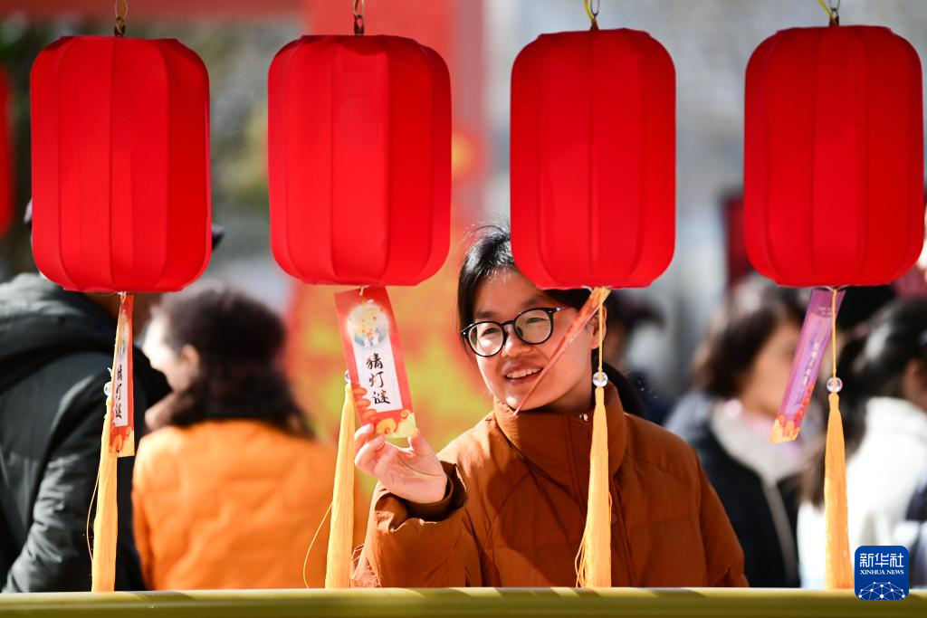 2月7日,游客在活動(dòng)現(xiàn)場(chǎng)參與詩(shī)詞問(wèn)答游戲。