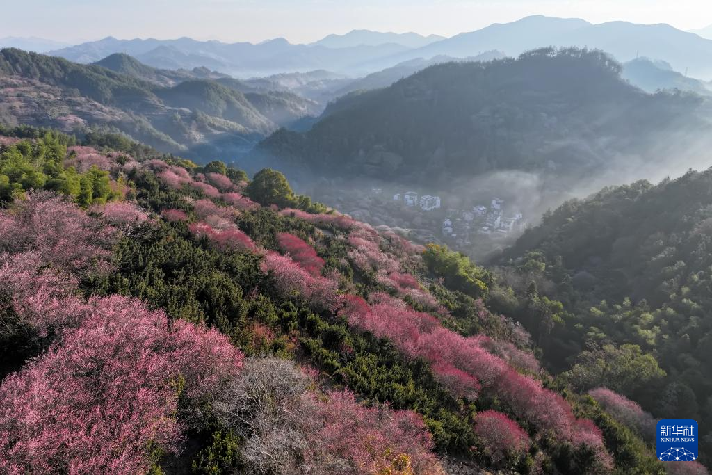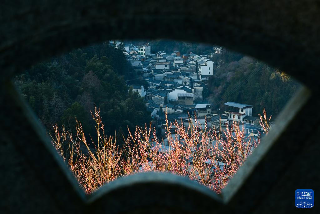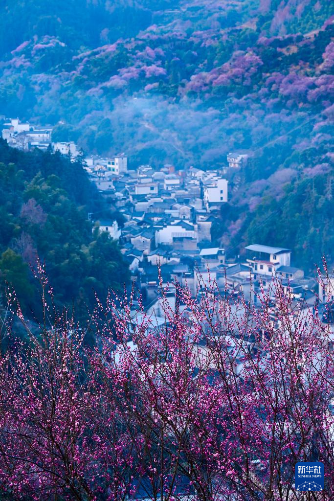 近日,在安徽省黃山市歙縣雄村鎮(zhèn)賣花漁村,漫山遍野的梅花綻放,花海與徽派村落民居相映成趣,景美如畫。