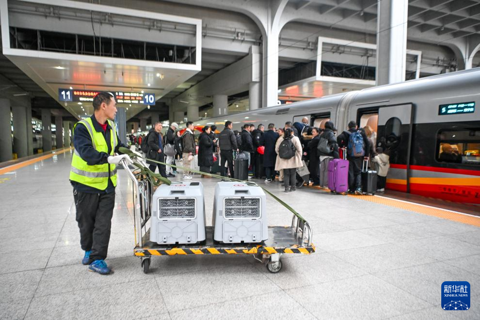 今年春運(yùn),重慶鐵路部門在部分線路試點(diǎn)推出高鐵寵物托運(yùn)服務(wù),以滿足旅客攜帶寵物出行的需求。