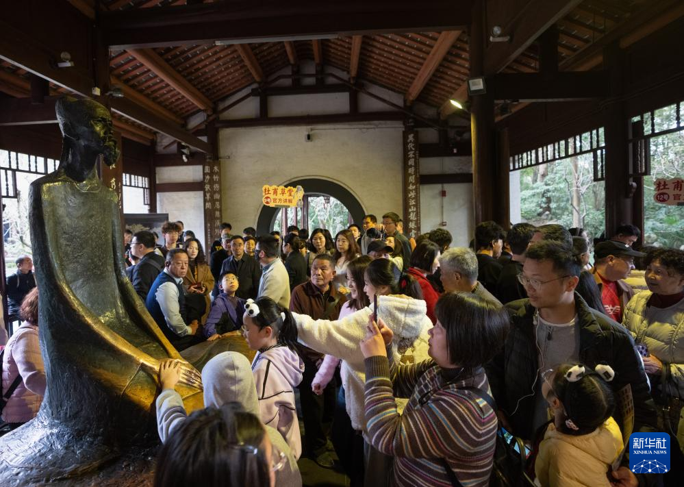 2月23日正月初七,丙午馬年“人日游草堂”祭拜詩圣儀式在成都杜甫草堂大雅堂前舉行,眾多學(xué)者、詩人和游客前來憑吊詩圣。1992年,成都杜甫草堂博物館首倡恢復(fù)了“人日游草堂”活動(dòng),這一文化活動(dòng)入選了四川省非物質(zhì)文化遺產(chǎn)目錄。