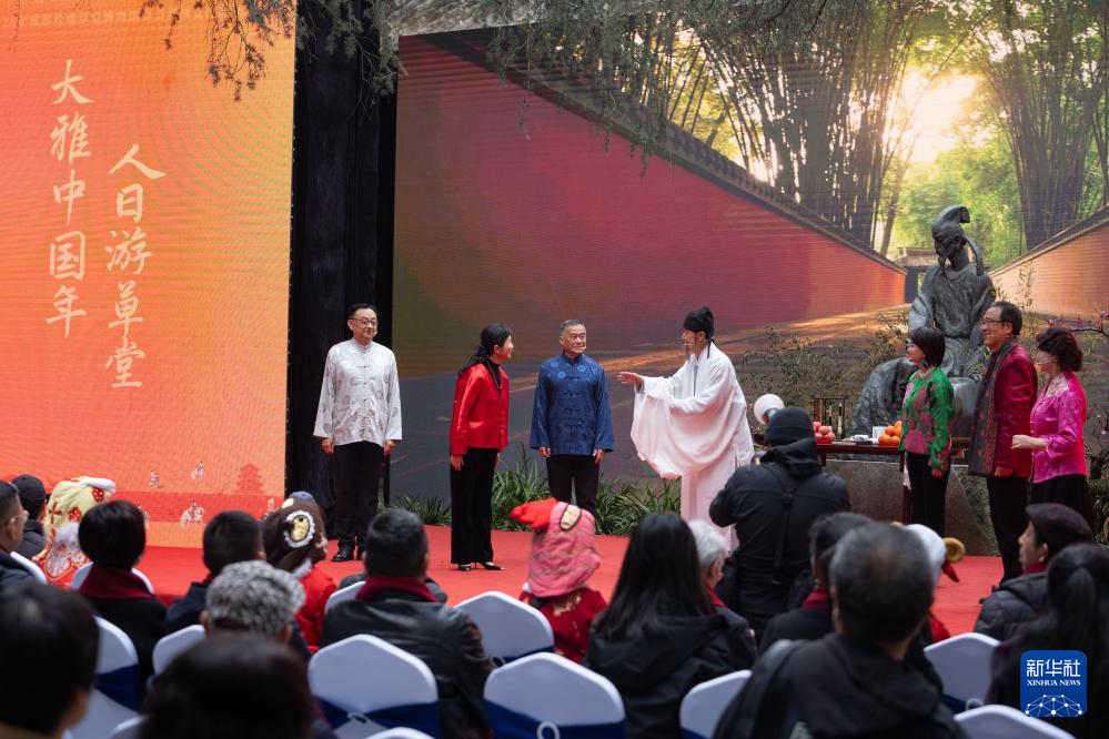這是2月23日拍攝的丙午馬年“人日游草堂”祭拜詩圣儀式。