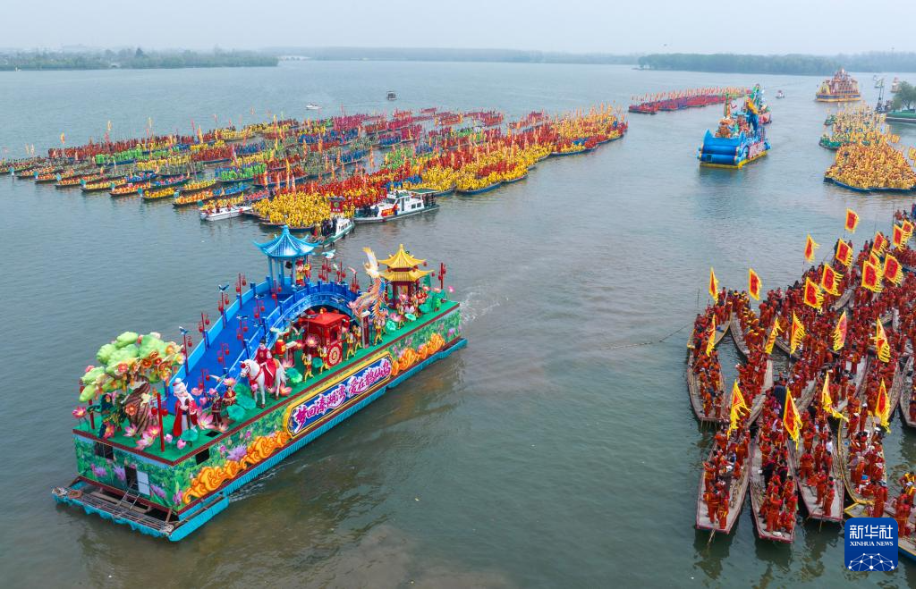 4月6日,2026年泰州姜堰溱潼會船節(jié)在江蘇省泰州市姜堰區(qū)溱湖國家濕地公園開幕,數(shù)百條各式船只和上萬名會船選手飛篙走槳,奮勇爭先,演繹歷久彌新的民俗畫卷。